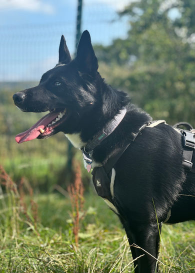 While Beetle has been with us at the centre, he has had lots of training. He’s very curious and has walked out with some of the dogs at the centre. When meeting other dogs, it can be overwhelming for him and he can be intense and vocal when first meeting, but will settle after he calms. Beetle may go with another dog, however, they will need to be calm and able to handle Beetle's high and boisterous energy. He will not be allowed to go with cats or small mammals. Although Beetle can come off as intense, all he needs most is socialisation. He’s very curious about the world around him and needs a confident and adventurous family to show and teach him about new experiences (all in a positive and supportive manner).