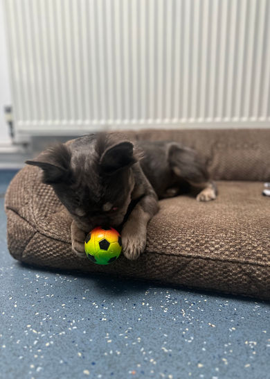 Dior is not your typical frenchie! She has a very high energy levels and needs quite a lot of mental stimulation in order to calm her mind. When she is here at the centre she loves her food enrichment games and walks where she can say hello to people. However, Dior can be a little full-on when meeting people she doesn't know and can be a little mouthy, as she think they always going to give her a treat! This is just her getting over-excited and will need her training to continue in order to keep her calm when meeting new people. Due to this behaviour, Dior will not be allowed to go with children younger that 12 years of age.